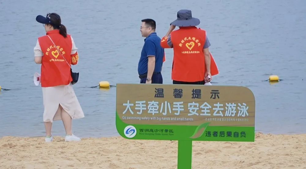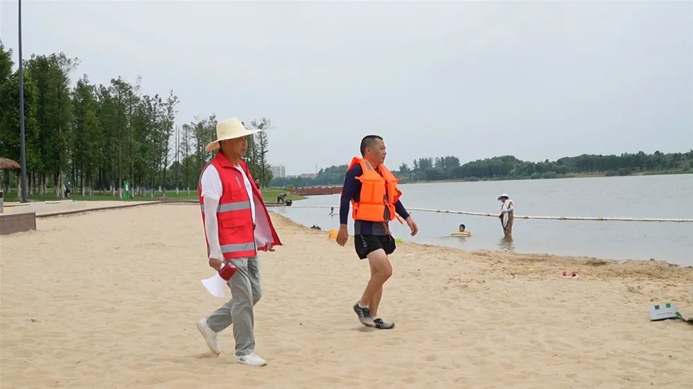 入夏以来,气温节节攀升。西洞庭沙河沙滩公园吸引了不少群众前来游泳嬉水,为保护好全区居民特别是未成年人的生命安全,金凤街道成立防溺水志愿救援队,采取“人防+技防+物防”机制,给群众满满安全感。