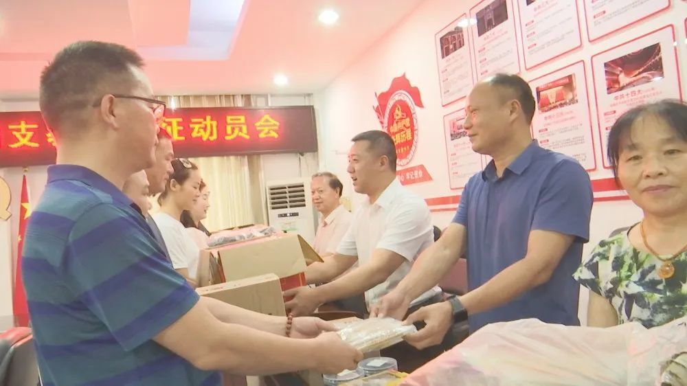会后举行“小太阳”支教团队授旗仪式,区纪委、教育局、教育基金理事会、妇联集体为支教队捐赠出征物资。