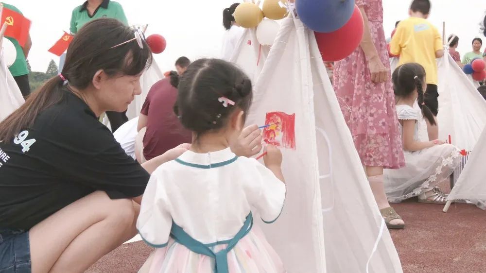 为营造拥军爱国的浓厚氛围,传承红色基因,增进亲子感情,7月26日晚,以“童心向党 手绘八一”为主题的亲子彩绘帐篷活动在祝丰镇港口湿地公园举办,区党委委员、管委会副主任郭蕾到现场观看,50组亲子家庭报名参加本次活动。