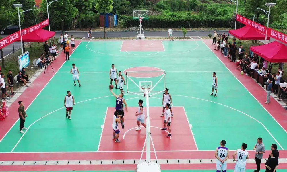 开幕式现场,祝丰镇相关负责人致开幕辞,对比赛开幕表示热烈祝贺,向各位运动员、裁判员及现场观众表示诚挚的欢迎。裁判员、运动员代表分别宣誓,随后,祝丰镇主要负责人宣布比赛正式开幕。 随着裁判的一声哨响,比赛正式开始。控球、过人、传球、跳投、上篮、盖帽,各种精彩场面纷纷上演,每次的进攻与防守、争抢与投篮都把比赛推向高潮,球鞋与地板的摩擦声,篮球与球框的碰撞声,现场拉拉队的助威呐喊声,点燃了整个赛场。 据了解,本次比赛共有9支队伍参赛,各队队员均是由镇、村工作人员及本村村民组成,比赛共分为两轮,第一轮采用淘汰制,抽签进行比赛,决出三支获胜队伍;第二轮采用积分制,进行循环赛,决出冠亚季军。