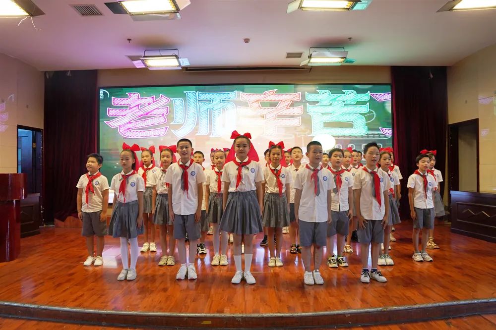 “老师,您辛苦了!”少先队员们上台为大会献词,代表全区莘莘学子为教师们送上诚挚祝福,表达对西洞庭教育发展的美好祝愿。一抹抹鲜艳的红领巾在胸前闪耀,一句句铿锵的献词在会场回响,深深感染着在场的每一位教师代表。