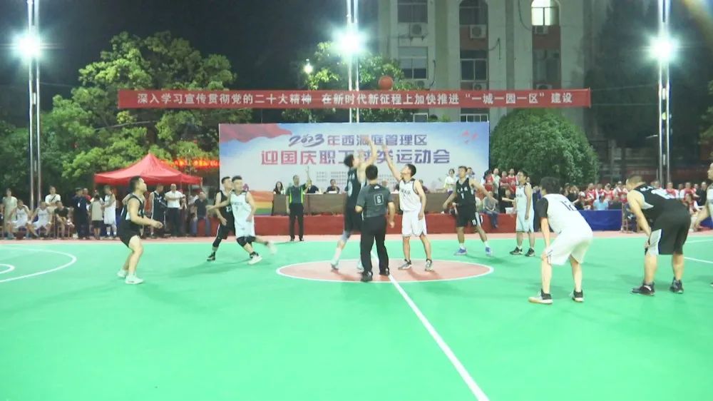 9月15号下午,西洞庭迎国庆职工球类运动会篮球赛开幕式在灯光球场举行。区党委委员、政法委书记任立,区党委委员、管委会副主任郭蕾,区党委委员、纪委书记、监工委主任孙晖宇,区二级调研员刘建强出席开幕式。
