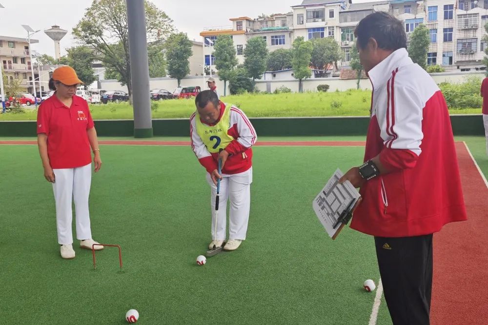 庄严的开幕式结束后,随着裁判一声令下比赛拉开序幕。赛场上,运动员们沉着冷静,顽强拼搏;教练员排兵布阵,运筹帷幄;裁判员们动作规范,执裁严谨;观众们聚精会神,热情洋溢,为每一杆好球鼓掌喝彩。比赛双方斗智斗勇,攻防激烈,运动员们斗志昂扬,身手矫健,弯腰、瞄准、挥杆、击球等动作一气呵成,在教练的指挥下,有的一杆好球扭转乾坤,反败取胜;有的一杆精彩擦球或远摸打破对方精心布局,赢得满场喝彩。球场上清脆的击球声、观众的叫好声、教练的命令声、裁判员的宣判声,此起彼伏,构成赛场上和谐的交响乐,展现出门球运动独特的魅力。