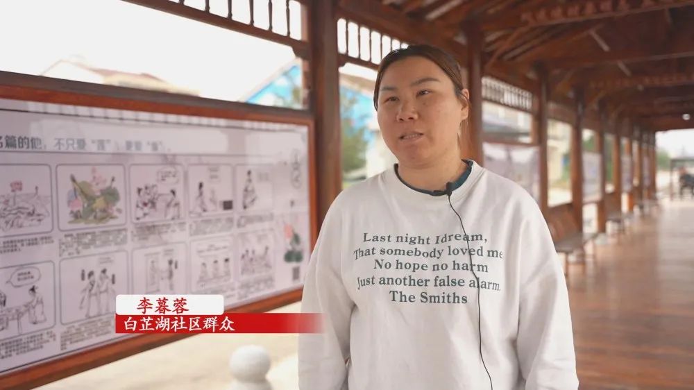 白芷湖社区党总支书记孙卫东:在区纪委和街道党工委的支持下,我们将廉洁文化建设和美丽乡村建设相结合,通过展示牌、提示语、文化长廊、手绘墙等微景观的设立,进一步增强以物示廉的教化作用,引导社风民风持续向好向上。