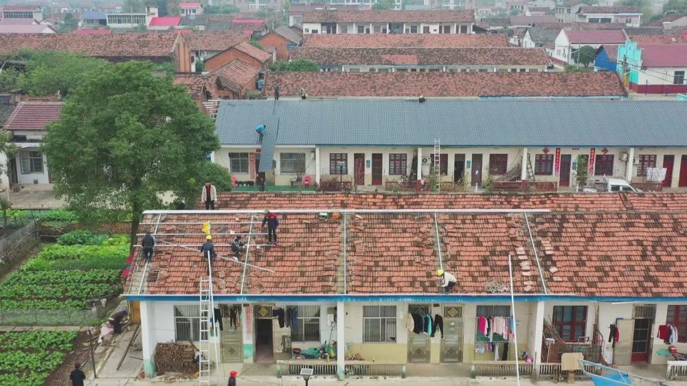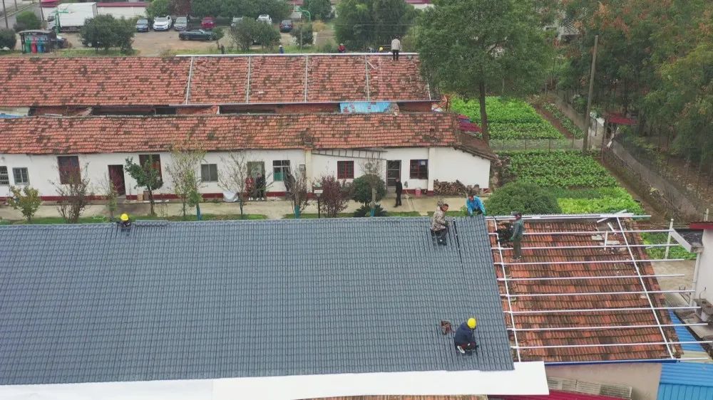 据现场工人介绍,这次改造不是换瓦,而是直接在原来的屋顶上铺设一层新瓦片,对屋顶进行翻修,架设钢梁,做脊,封檐,然后再铺上便宜又实用的树脂瓦,既节省了工程量,也不会对房屋主体结构造成损伤,而且树脂瓦比琉璃瓦或者砖瓦都更加耐用、美观,确实是一个经济、高效、美观的改造方案。