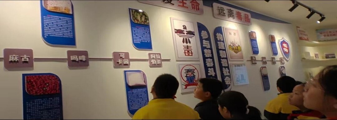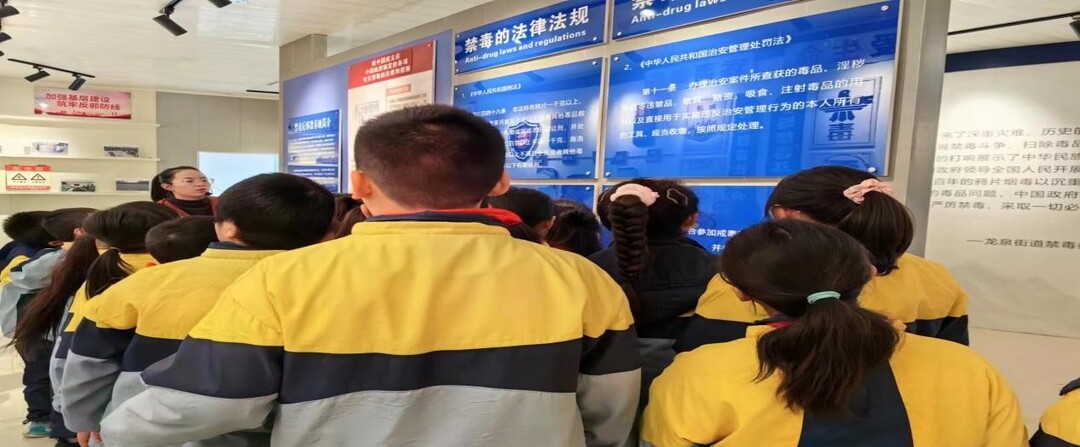 来到禁毒教育基地,同学们跟随讲解员的脚步,认真的听着关于毒品的形状,种类,危害及防毒技巧等内容讲解。