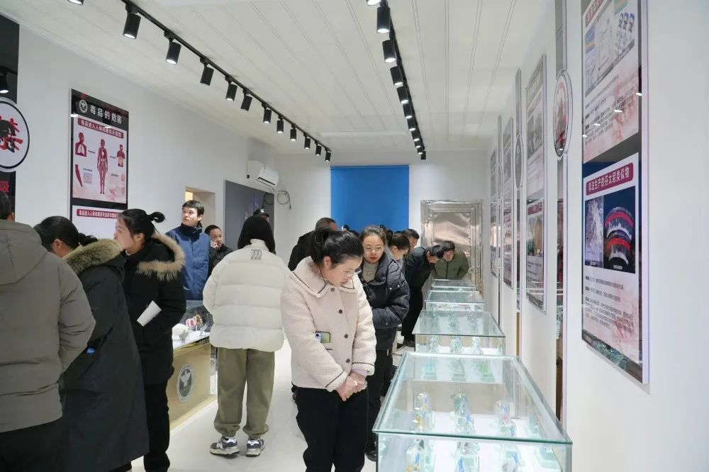 会议结束后,与会人员还来到禁毒教育基地进行参观。活动现场,大家跟随讲解员,认真观看了展厅内的图片文字、毒品模型、禁毒法规及毒品预防等知识展板,一组组逼真的毒品模型,一个个鲜活的案例事件让现场的干部职工深刻认识到了毒品对身心、家庭、社会的巨大危害,进一步筑牢了禁毒思想防线。大家纷纷表示,今后将自觉抵制毒品,积极参与禁毒工作,为筑牢全民禁毒钢铁防线,打赢新时代禁毒人民战争贡献力量。