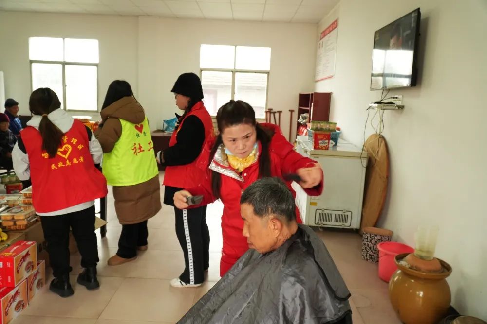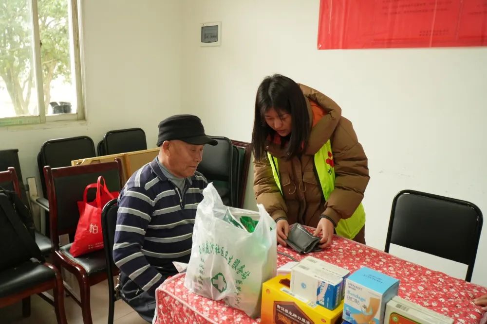 活动现场,志愿者们耐心地为老人们进行把脉问诊,免费为他们测量血压,血糖,给他们修剪头发、指甲。同时还将水果、饼干、蛋糕等生活物资以及日常保健药品逐一递到老人们手里。
